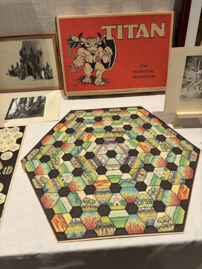 Alright, here’s some shit I saw and played. I got to the con about 1PM Friday and just wandered around mostly as everyone else was in games or still working like chumps! The coolest thing I saw that day was the shrine to Dave Trampier with tons of his old stuff to look at, including original pages of Wormy, two hand drawn TITAN playtest boards, and lots of old artwork prints. I found a copy of Dragon #77 at the Noble Knight booth and added it to the collection there (has King of the Tabletop in it). I got a personal tour of the exhibit from Tramp’s sister and it was pretty eye opening. There were letters where he was trying to get people to fund a WORMY compendium, but it didn’t go through. That needs to happen someday, somehow. Friday night we went out to the steakhouse there and started heavily drinking and the night was over (most people had gotten there after work and were pretty beat down already before the booze).